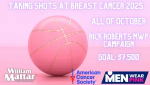 It’s time once again for Taking Shots At Breast Cancer! All through October, Rick Roberts will go live on Facebook and shoot 10 shots from 25 feet on his driveway basketball hoop. Each one he makes, that days sponsor donates $10.00 to his Men Wear Pink of CNY campaign! All the money raised goes to the American Cancer Society to help fight breast cancer right here in Central New York.